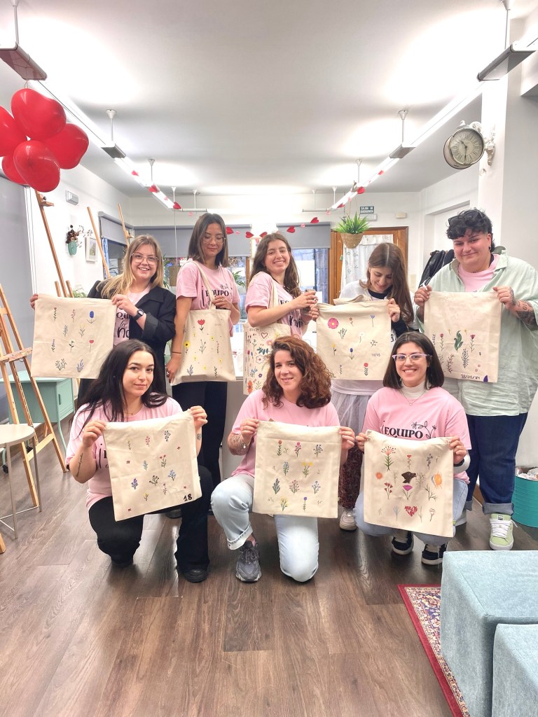 De entre todos los talleres a elegir escogieron pintar una tote bag. Quedaron preciosas.