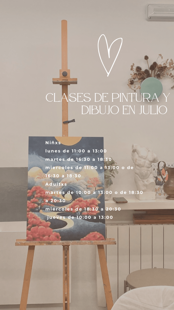 Este verano, ven a disfrutar del arte en nuestra academia! Durante el mes de julio, hemos diseñado nuestras clases para niñ@s y adult@s que quieran explorar su creatividad, aprender nuevas técnicas de dibujo y pintura, y disfrutar de un ambiente acogedor lleno de inspiración y diversión.