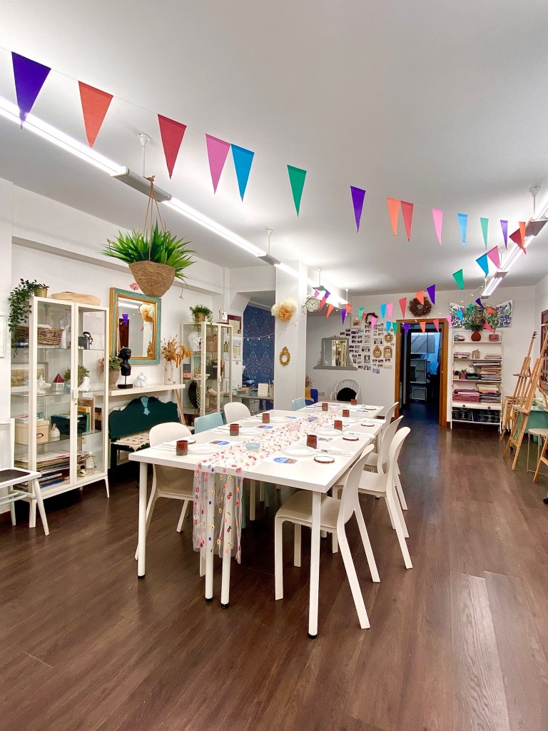 Que vivas un momento para ti, en el que desconectes, experimentes con el color y te lleves a casa una pieza única creada por tus propias manos.